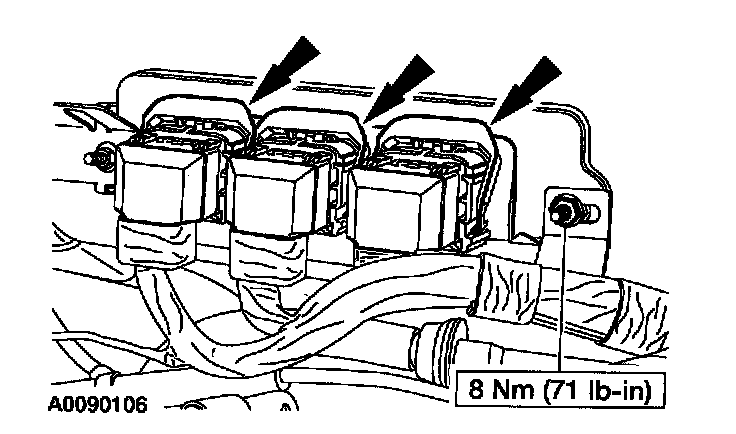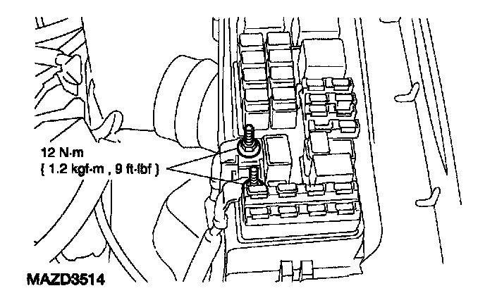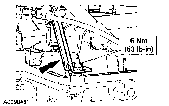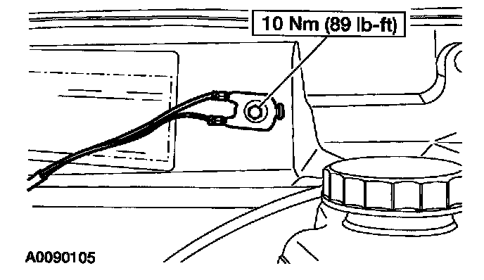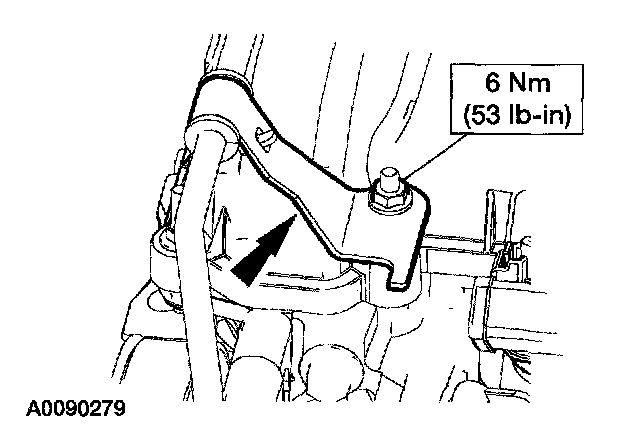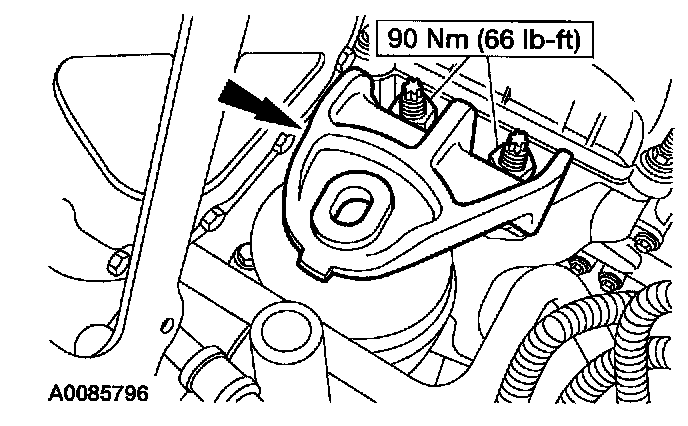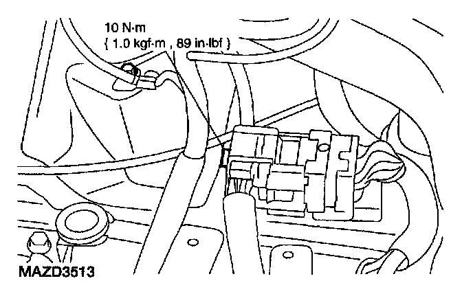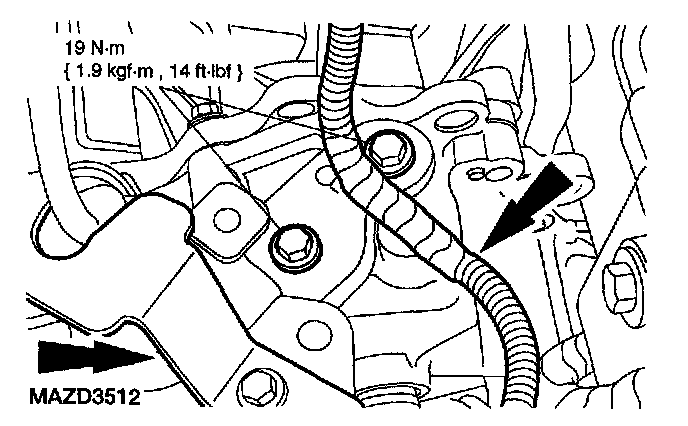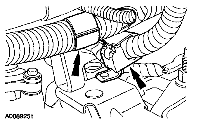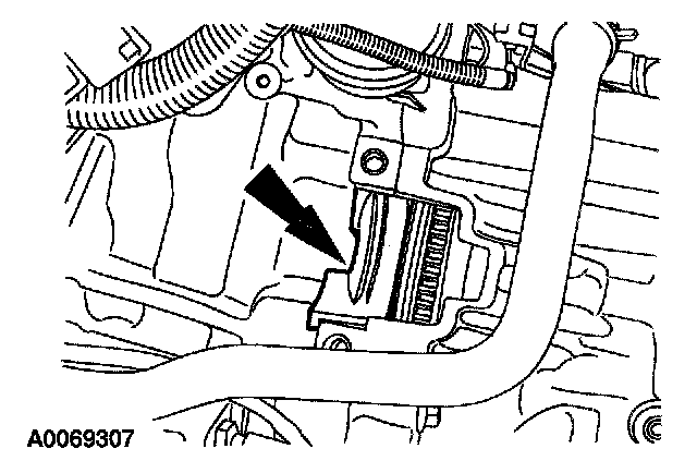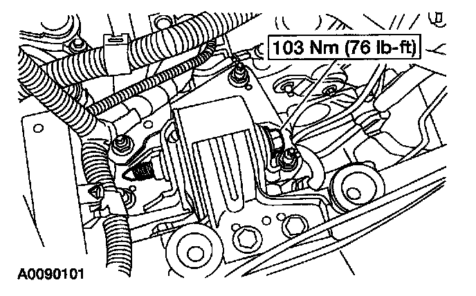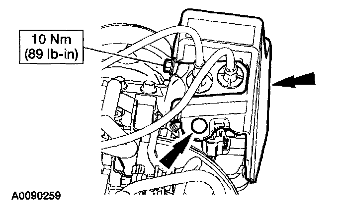 21. Connect the powertrain control module (PCM) electrical connectors. Position the harness and install the nut.