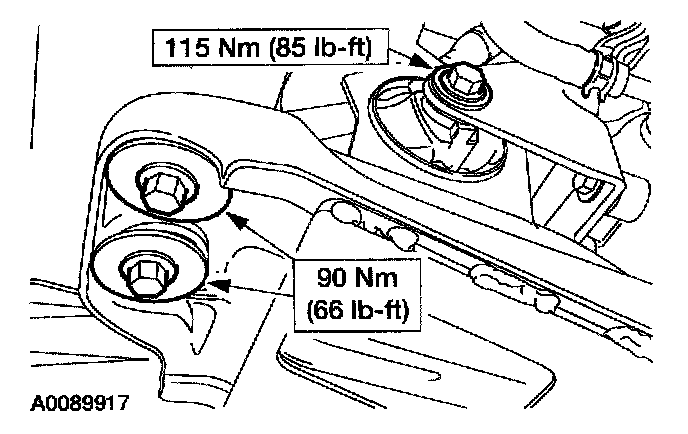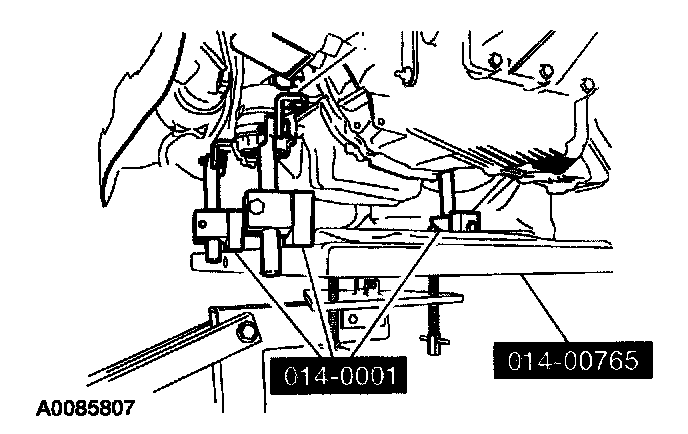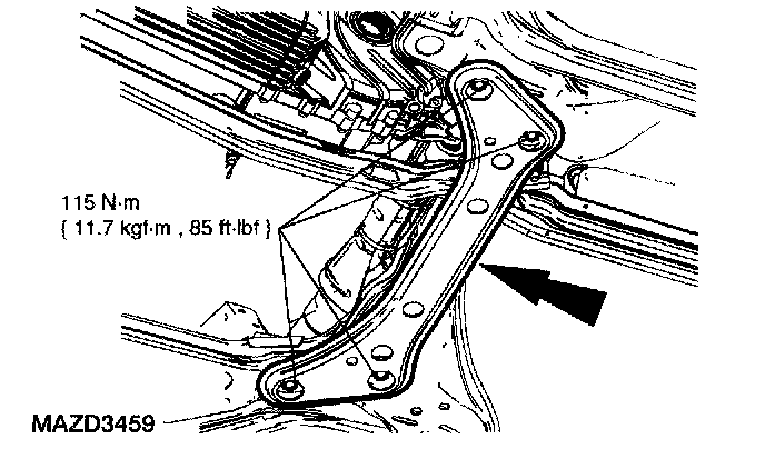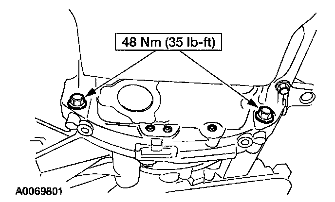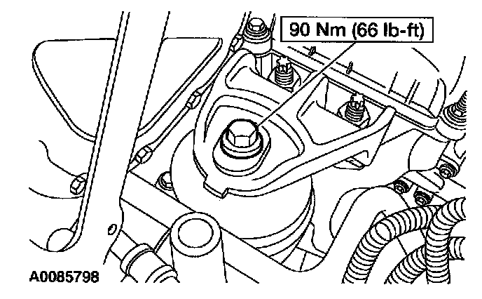 14. Install the two bolts for the engine support cross member and the front roll restrictor bolt.