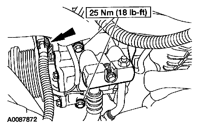 17. Install the A/C compressor, bolts and connect the A/C compressor electrical connector.