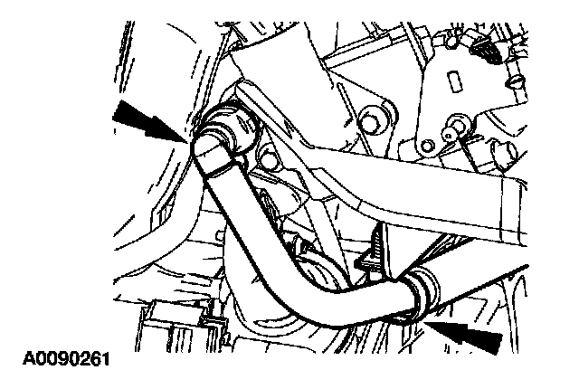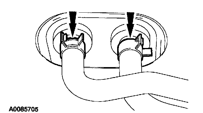 34. Position the coolant vent hose and install the coolant vent hose brackets and nuts.