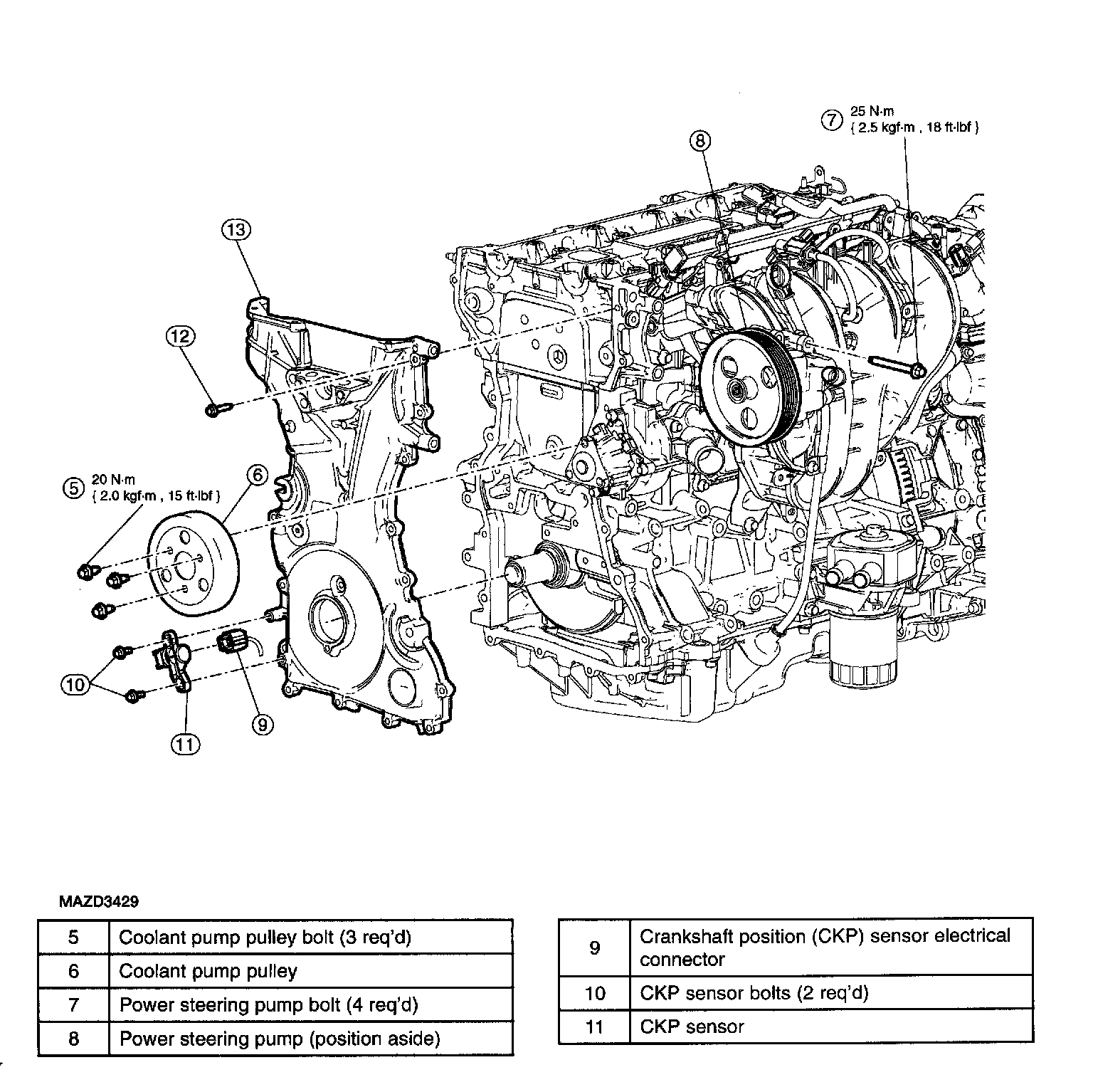 10. Remove the CKP sensor bolts and the CKP sensor.