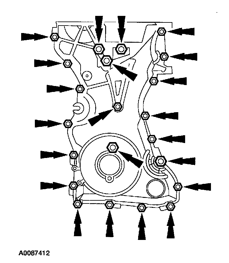 12. Remove the bolts and the engine front cover.