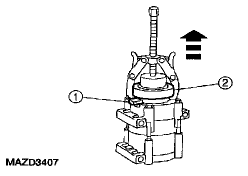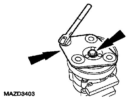 1. Thread an 8 x 1.25 mm bolt into the A/C clutch to force it from the compressor shaft.
