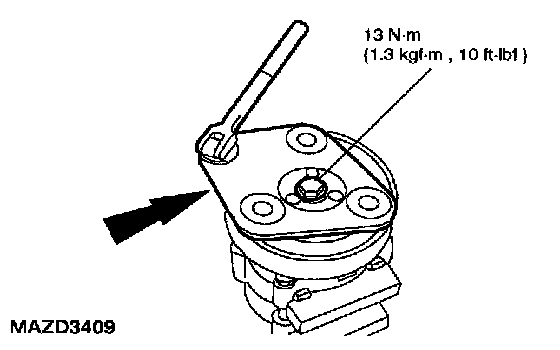NOTE: The A/C clutch pulley is a tight fit on the A/C compressor head It must be correctly aligned during installation.