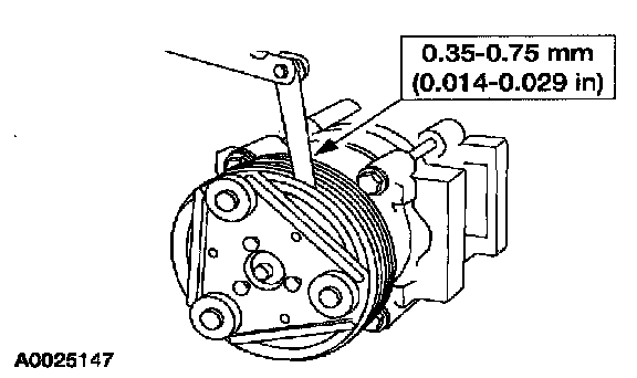 8. Measure and adjust the clutch air gap by removing or adding A/C clutch hub spacers.