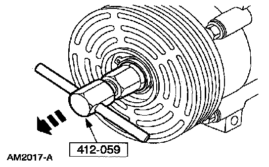 1. Remove the disk and hub assembly from the A/C compressor. See CLUTCH AND CLUTCH FIELD COIL.