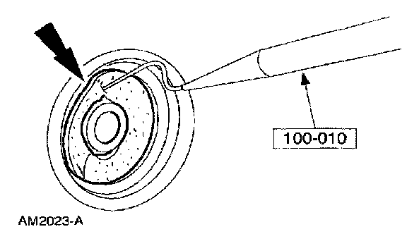2. Using the special tool, remove the shaft seal felt from the nose of the A/C compressor.