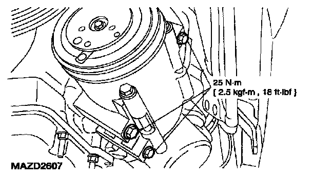 6. Remove the bolts and the A/C compressor.