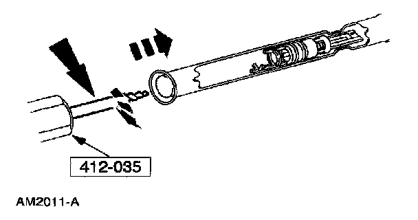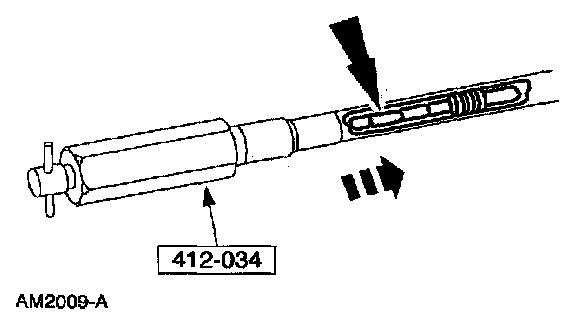 3. Using the special tool, insert the A/C evaporator core orifice into the condenser to evaporator line until seated.