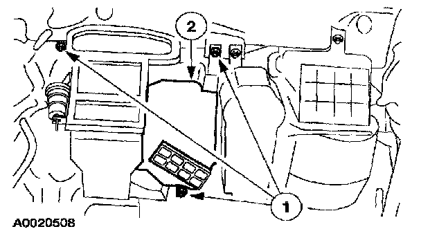 1. Remove the heater core housing retaining nuts.