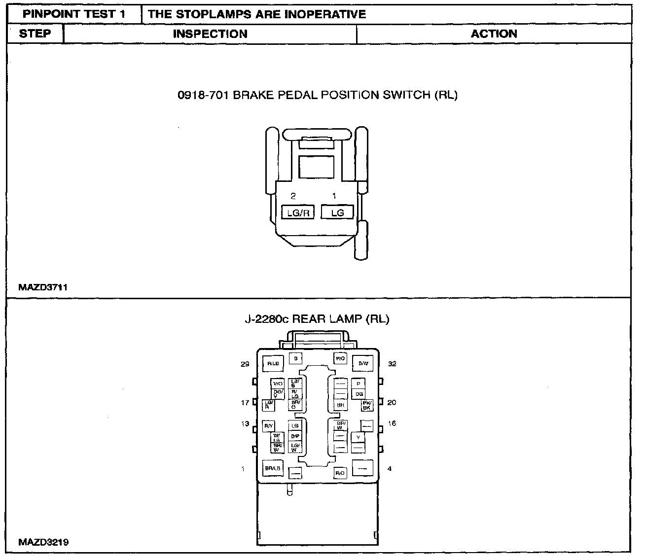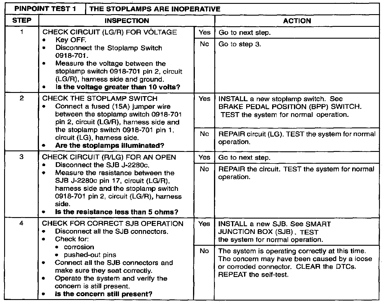 PINPOINT TEST 1: THE STOPLAMPS ARE INOPERATIVEStep 1 - 4: