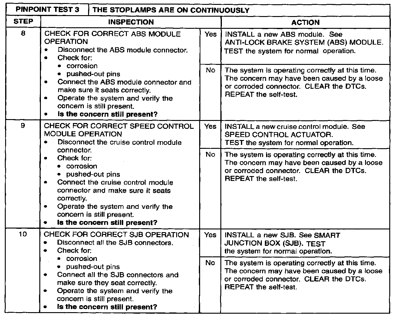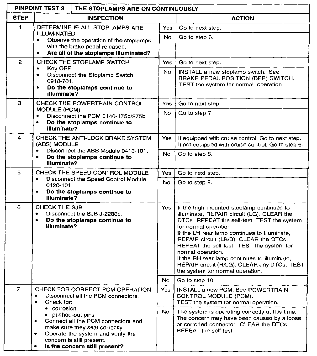 PINPOINT TEST 3: THE STOPLAMPS ARE ON CONTINUOUSLYStep 1 - 7: