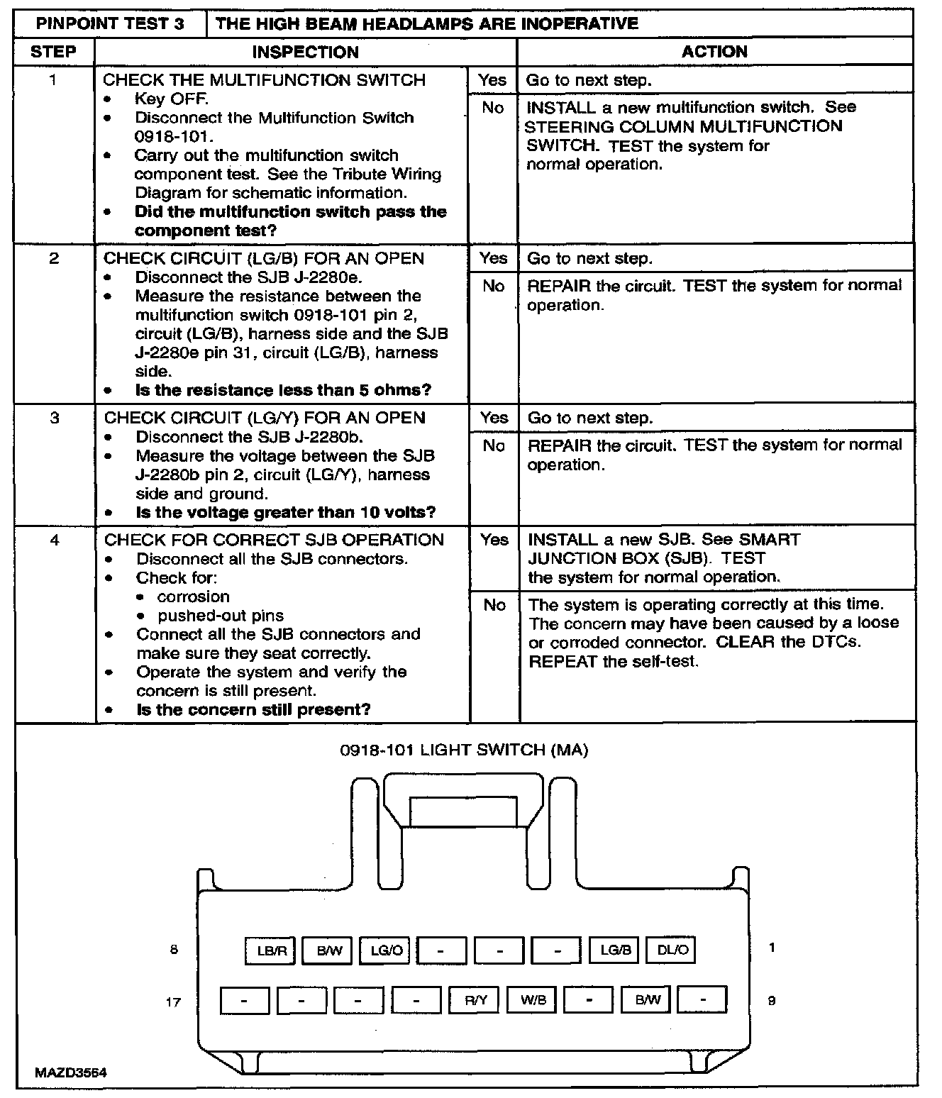 PINPOINT TEST 3: THE HIGH BEAM HEADLAMPS ARE INOPERATIVEStep 1 - 4: