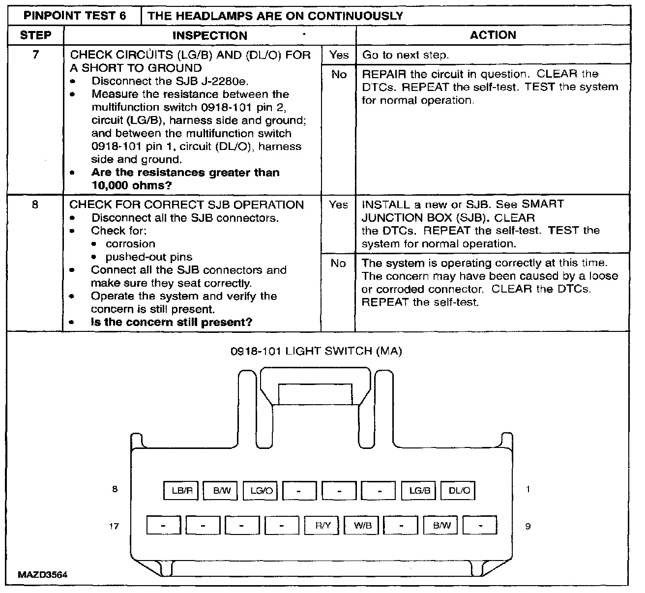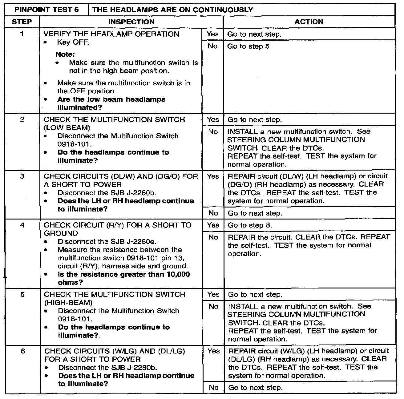 PINPOINT TEST 6: THE HEADLAMPS ARE ON CONTINUOUSLYStep 1 - 6: