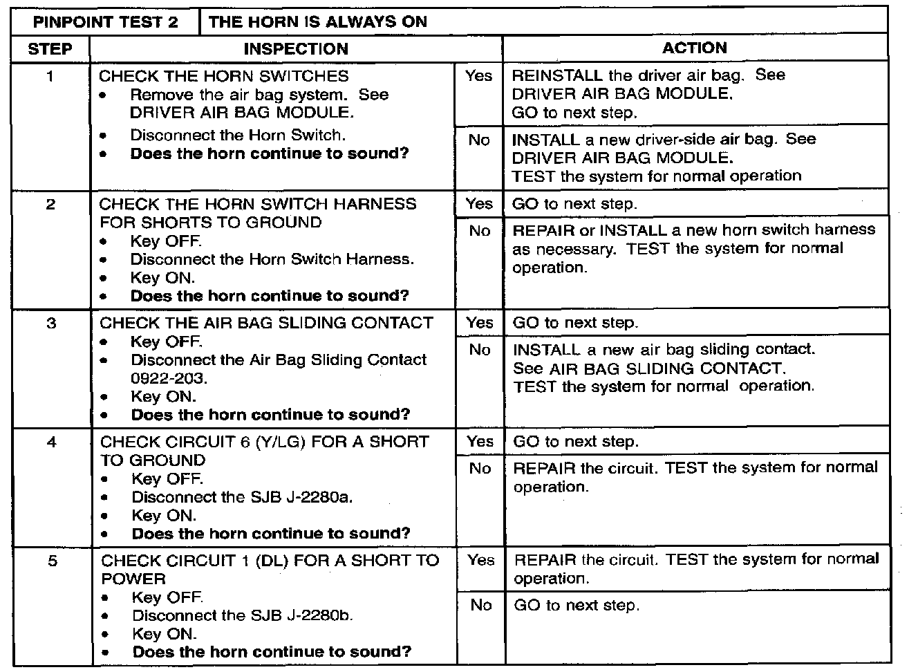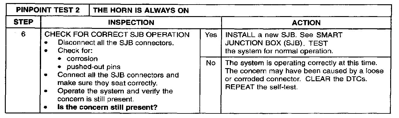 PINPOINT TEST 2: THE HORN SOUNDS CONTINUOUSLYStep 1 - 5: