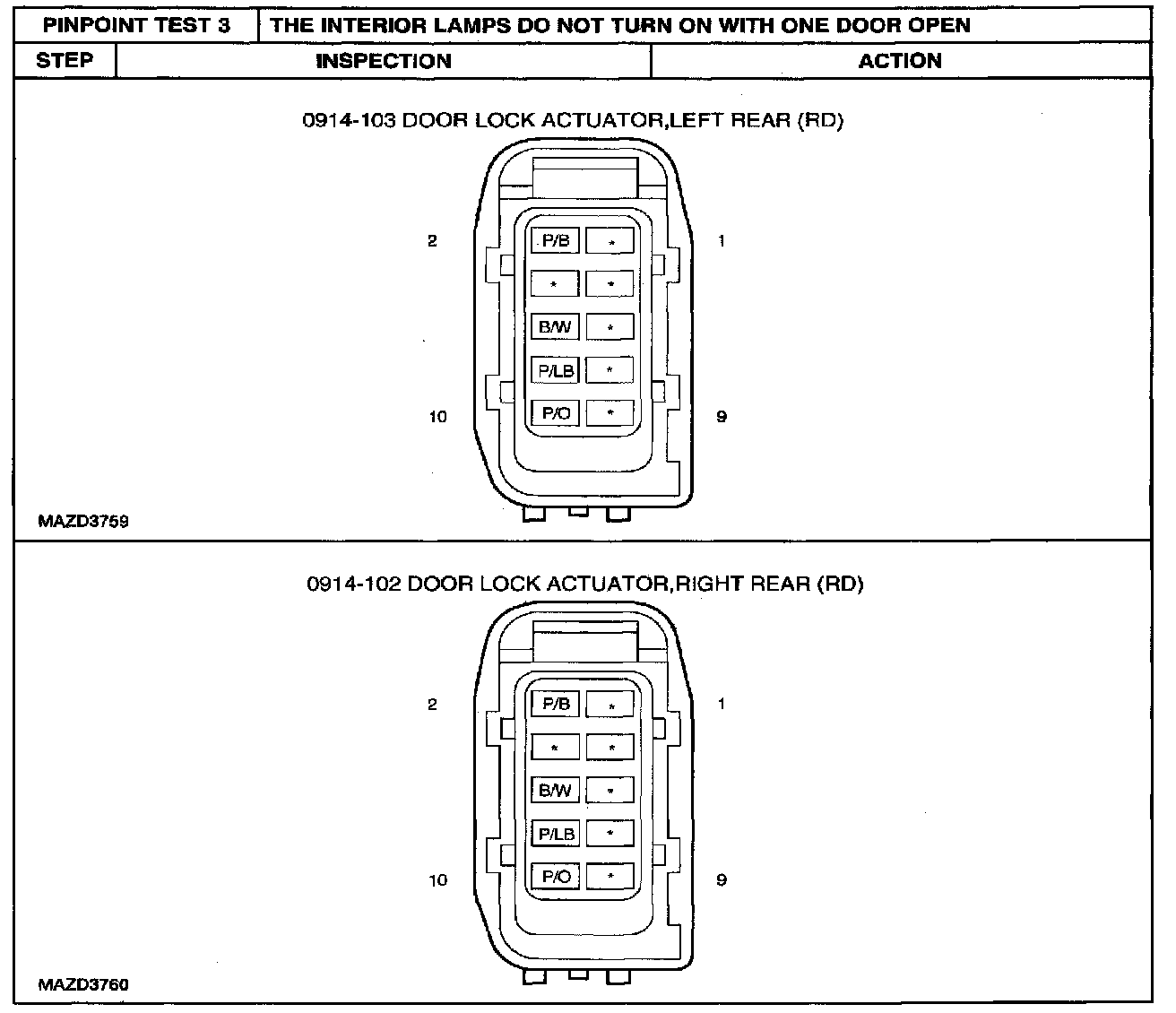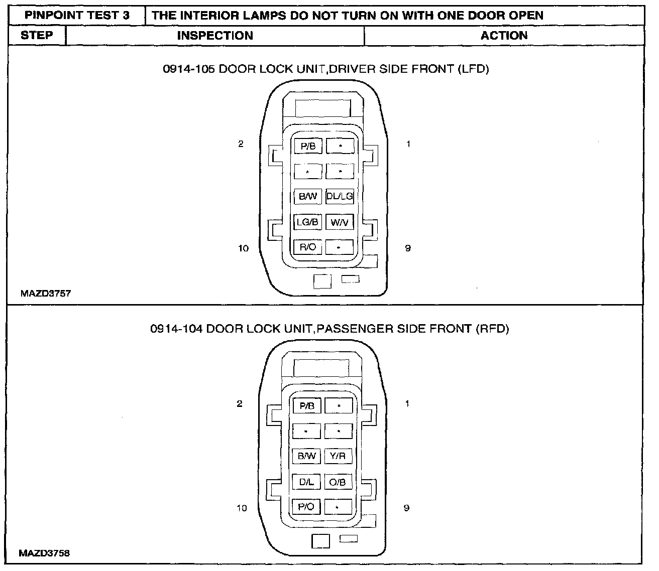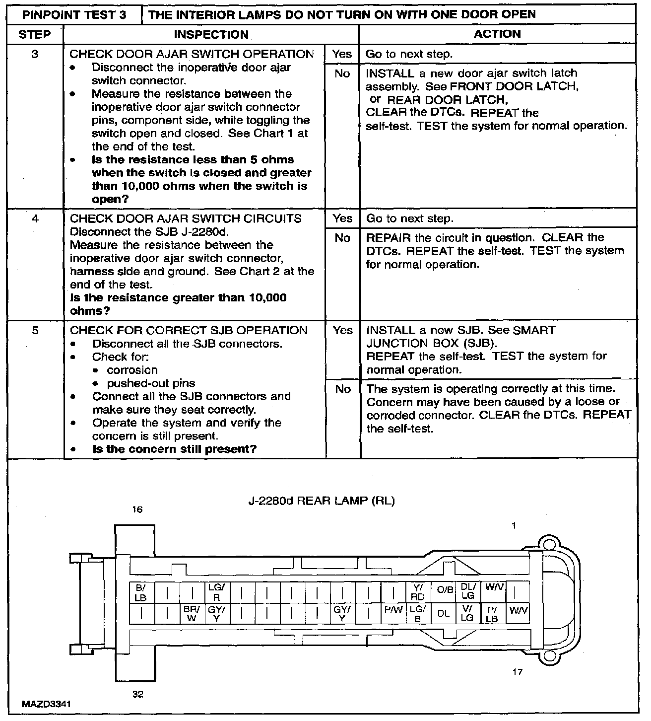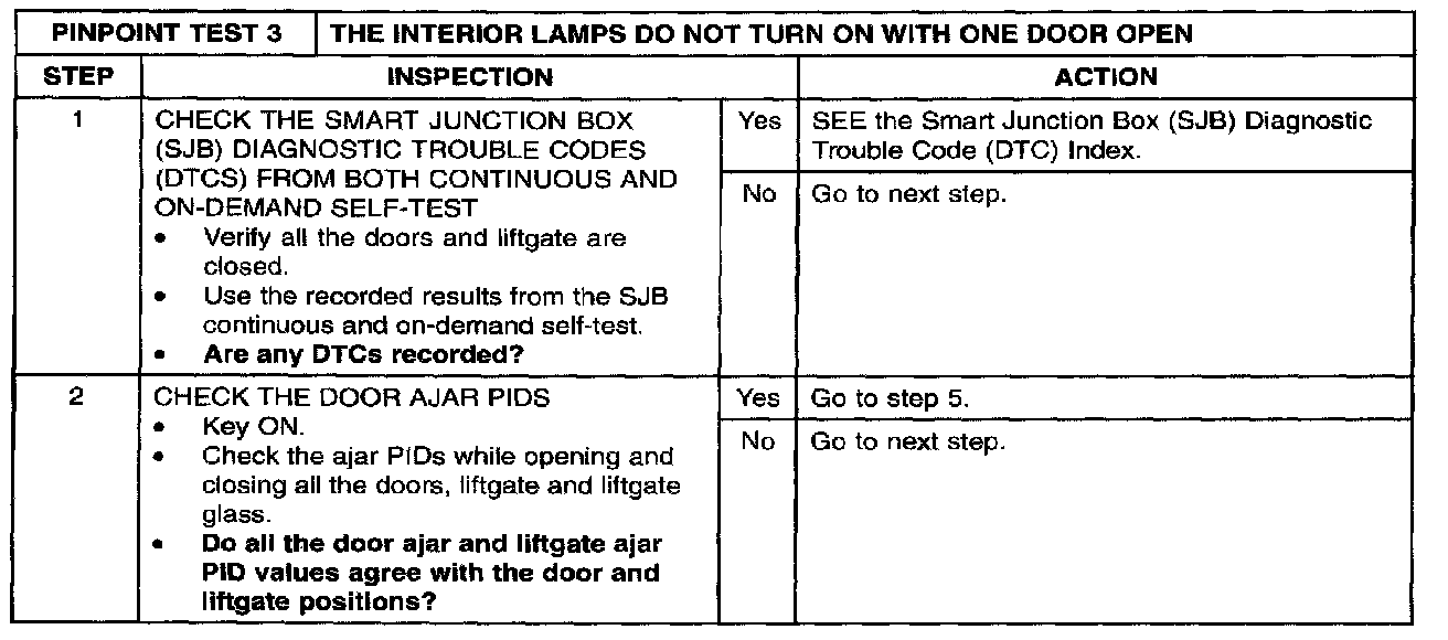 PINPOINT TEST 3: THE INTERIOR LAMPS DO NOT TURN ON WITH ONE DOOR OPENStep 1 - 2: