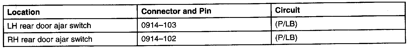 When a door or liftgate is opened, the ajar switch opens the circuit to the SJB. The SJB grounds the interior lamp circuit (P), illuminating the interior lamps.