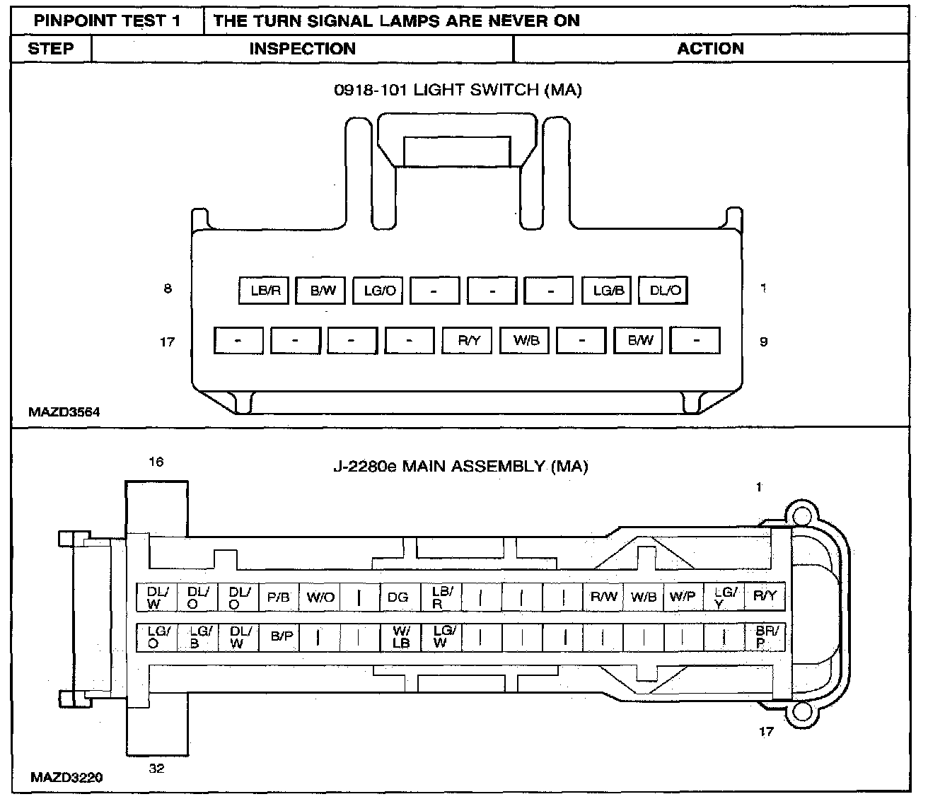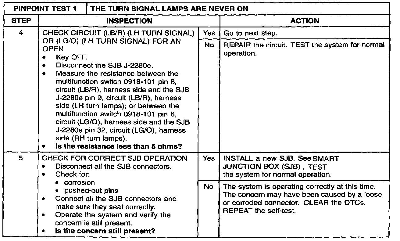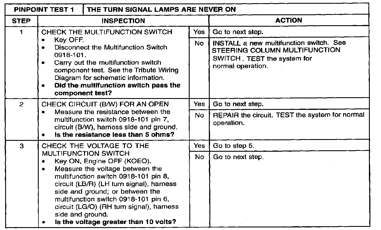 PINPOINT TEST 1: THE TURN SIGNAL LAMPS ARE NEVER ONStep 1 - 3: