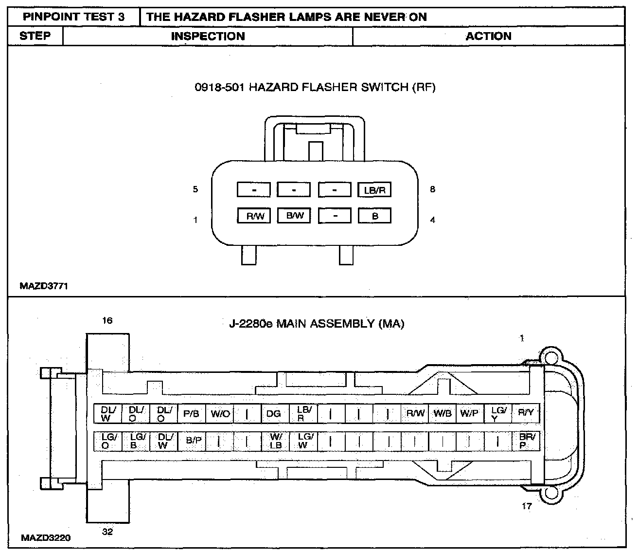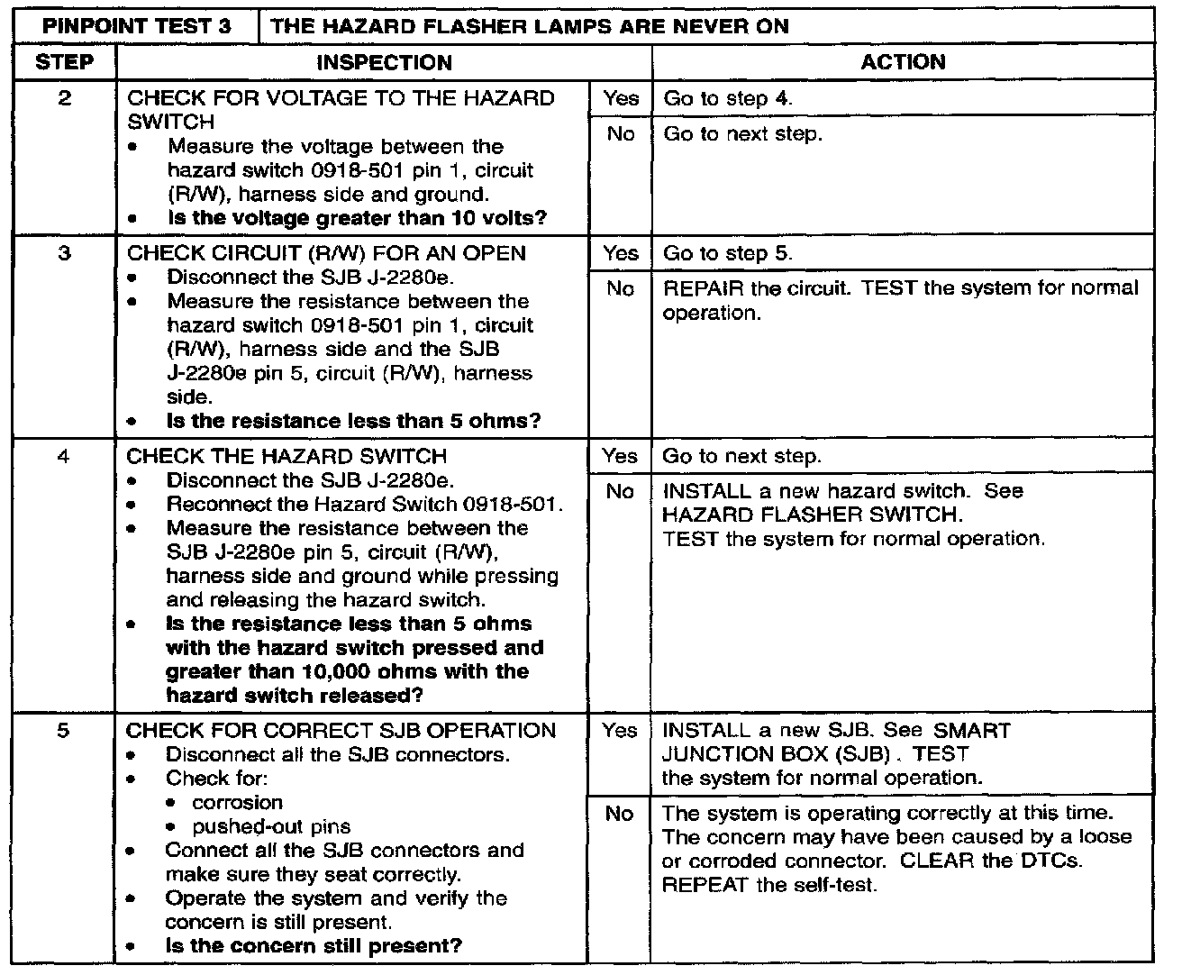 PINPOINT TEST 3: THE HAZARD FLASHER LAMPS ARE NEVER ONStep 1: