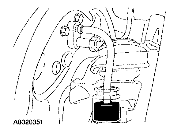 4. Attach a rubber drain hose to the RH rear bleeder screw and submerge the free end of the hose in a container partially filled with clean brake fluid.