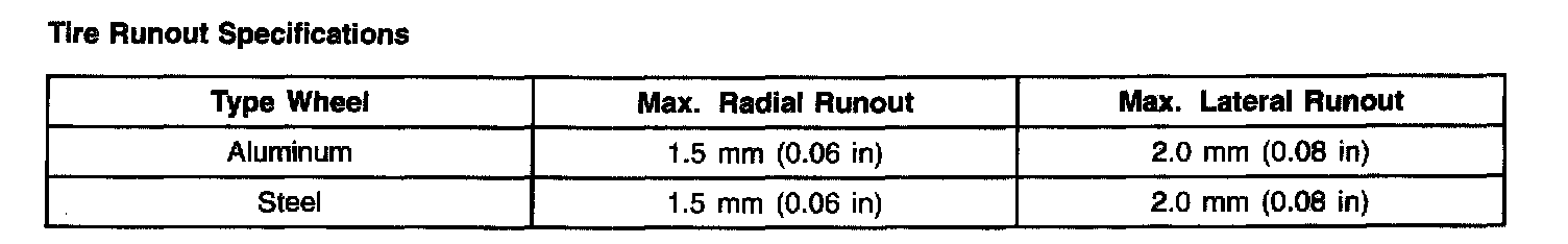 Tire Runout Specifications: