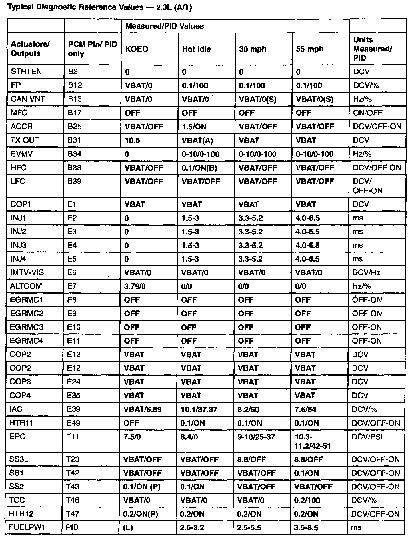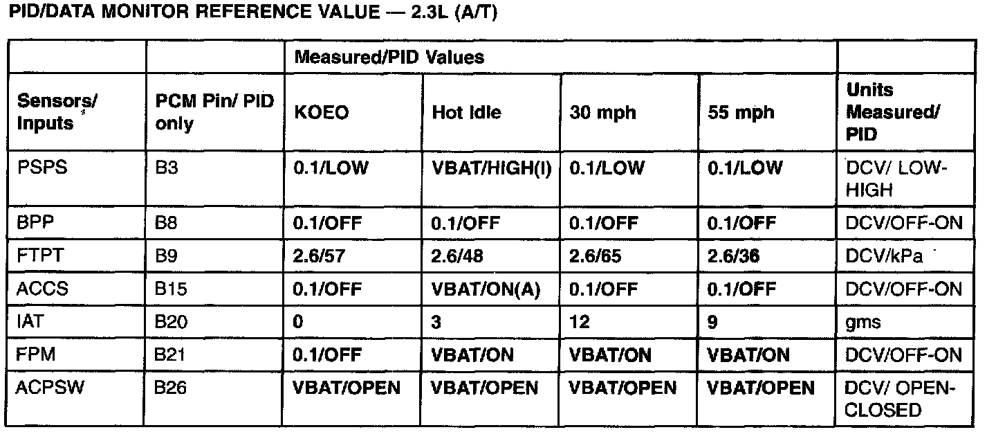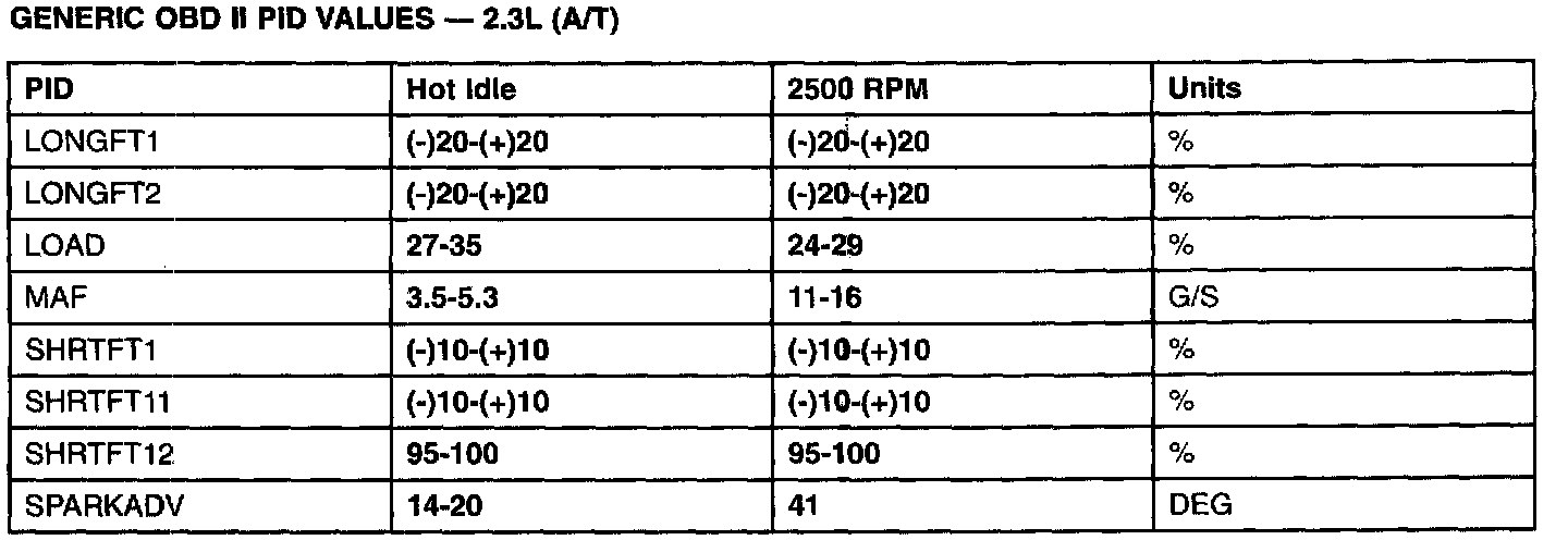 PID/DATA Monitor Reference Value - 2.3L(A/T) (Part 2):