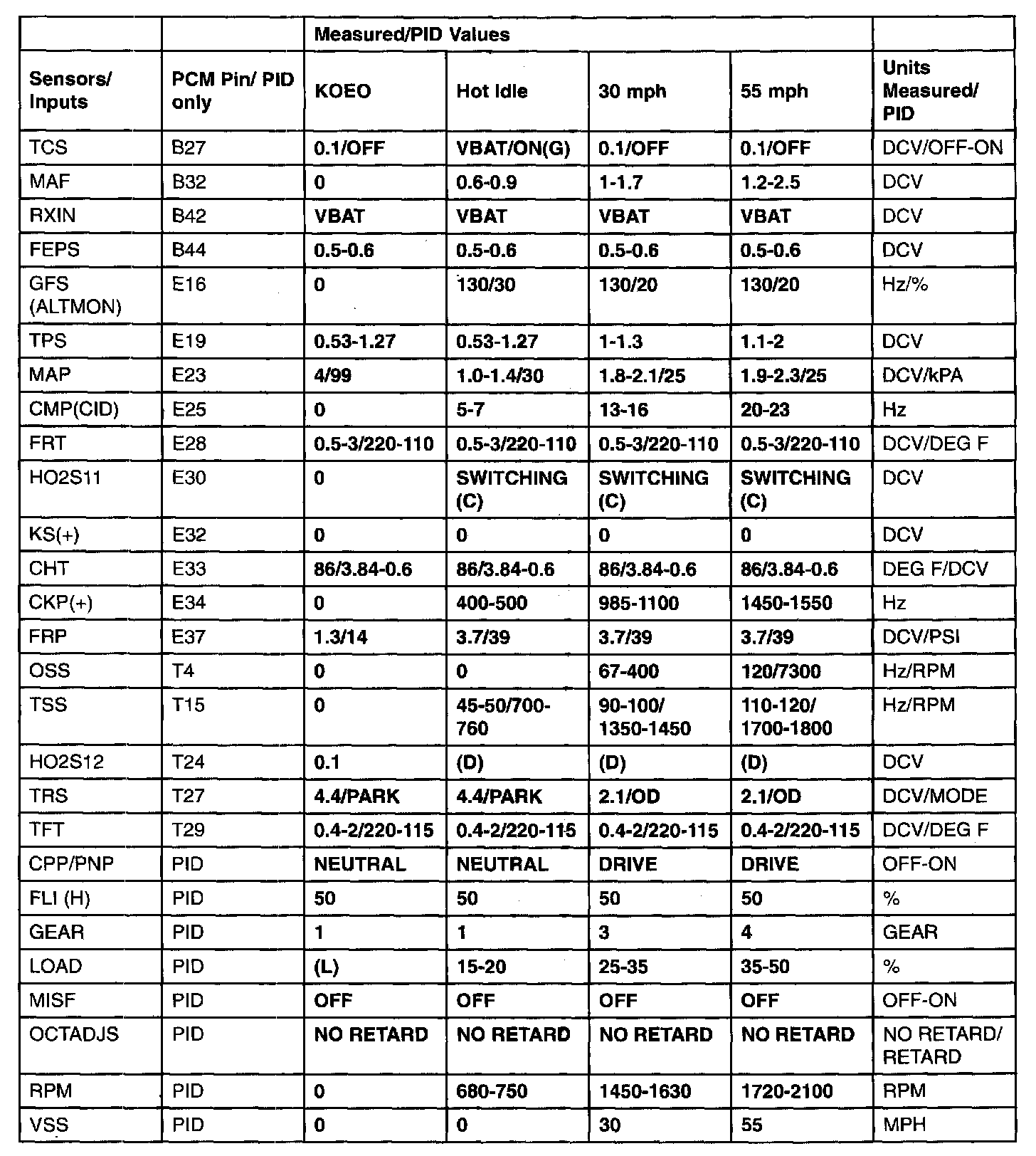 Generic OBD11 PID Values-(A/T):
