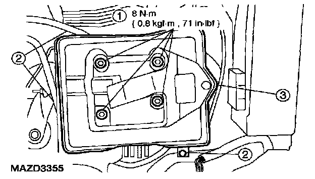 2. Disconnect the pin-type wire clips at the front and the side of the battery tray.