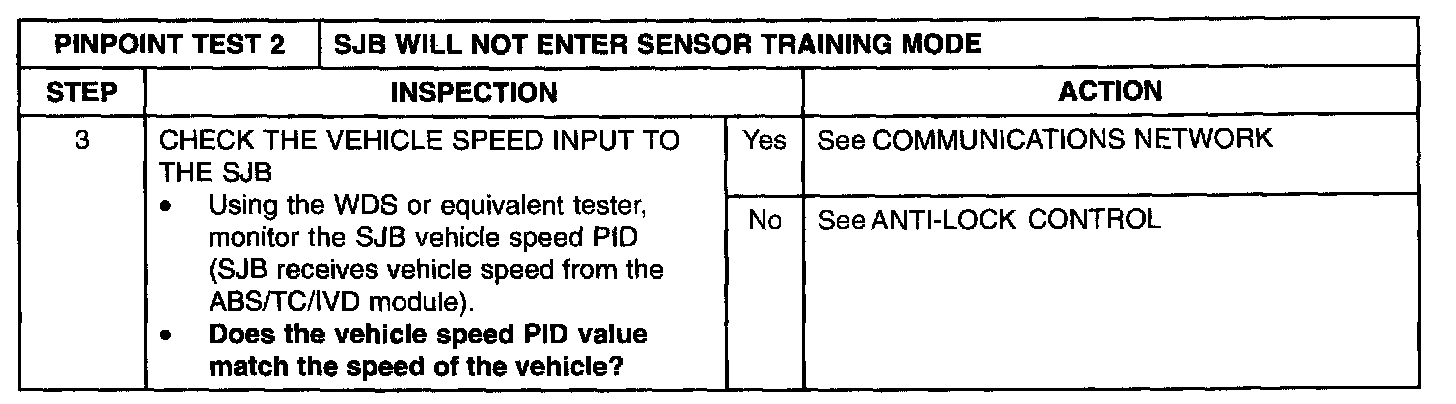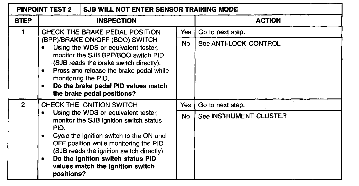 Pinpoint Test 2: SJB Will Not Enter Sensor Training Mode