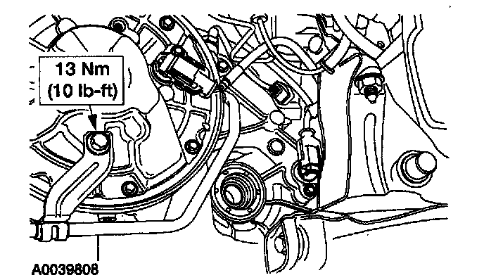 7. Install the transaxle fluid cooler line.