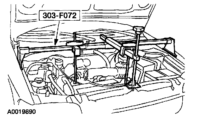 2. Using the special tool, support the engine.