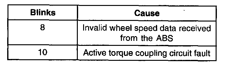 4WD - Blinks 3, 6, 8 or 10 times every minute when the 4WD system requires service. Use a WDS or equivalent Tester to check for diagnostic trouble codes (DTCs).