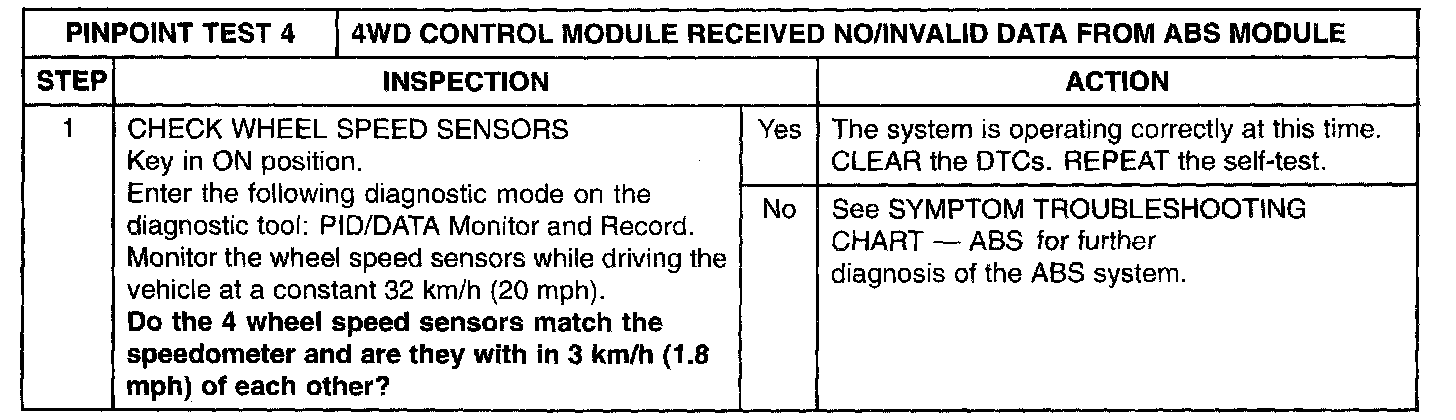 Pinpoint Test 4: 4WD Control Module Received No/Invalid Data From ABS Module