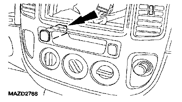 2. Push outward on the rear window defrost switch to remove it from the instrument panel center finish panel.