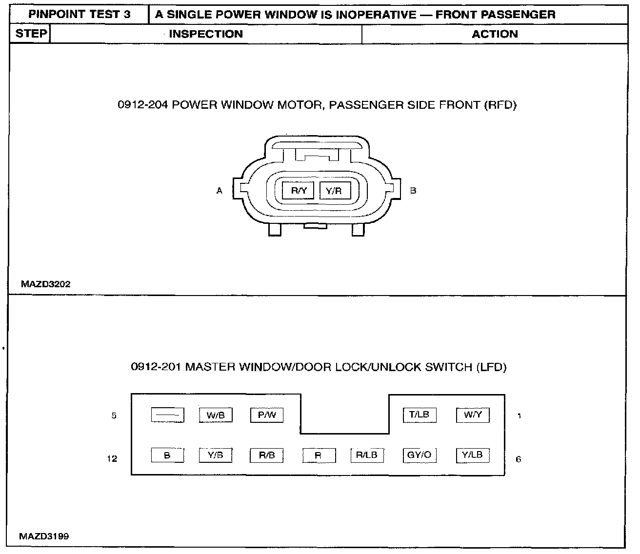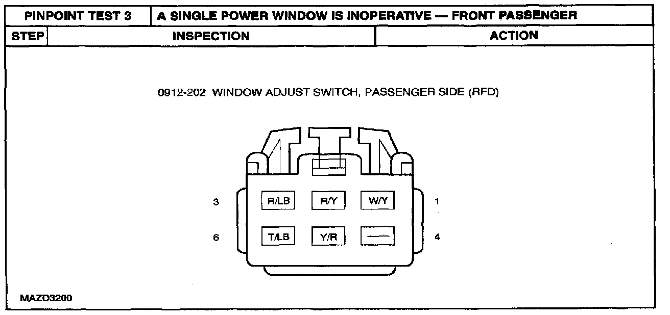 PINPOINT TEST 3: A SINGLE POWER WINDOW IS INOPERATIVE - FRONT PASSENGERStep 1 - 4:
