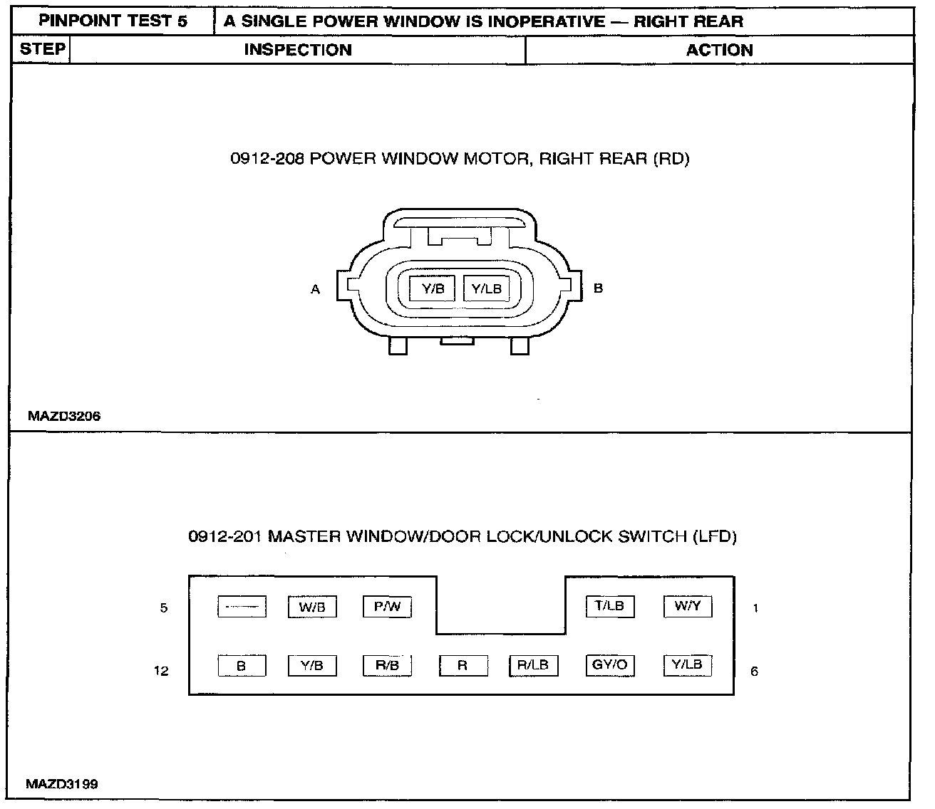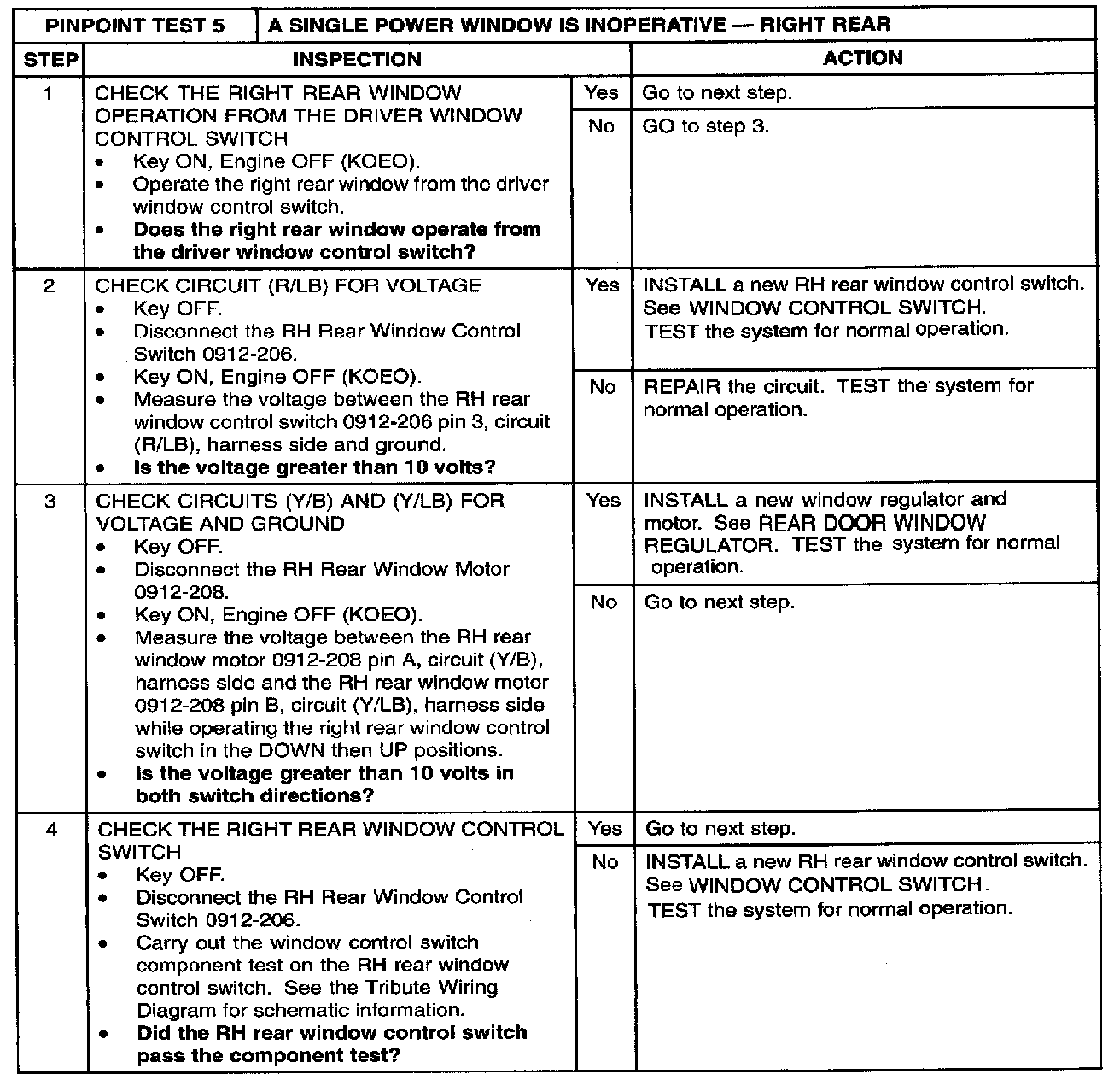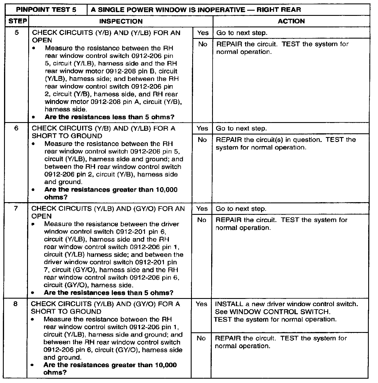 PINPOINT TEST 5: A SINGLE POWER WINDOW IS INOPERATIVE - RIGHT REARStep 1 - 4: