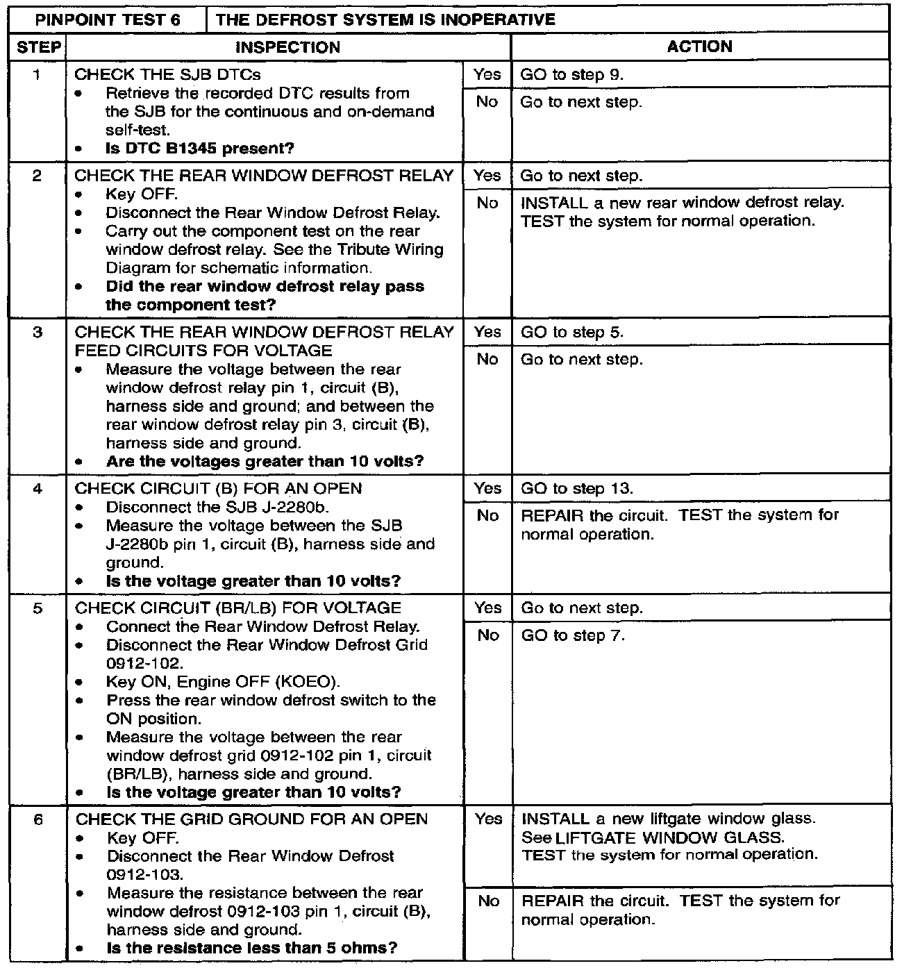 PINPOINT TEST 6: THE DEFROST SYSTEM IS INOPERATIVEStep 1 - 6: