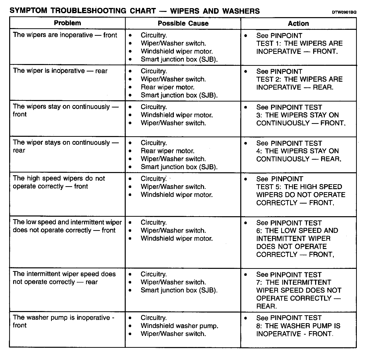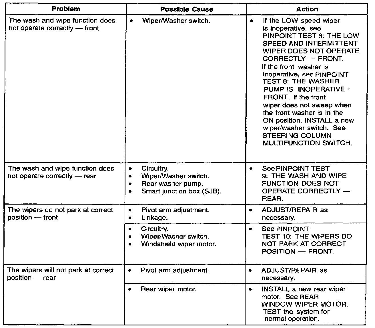 Symptom Troubleshooting Chart - Wiper And Washer Part 2: