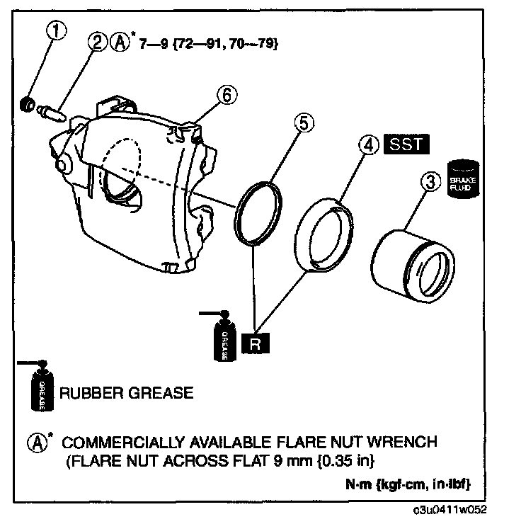 CALIPER (FRONT) DISASSEMBLY/ASSEMBLY [LF, L3]1. Disassemble in the order indicated in the table.