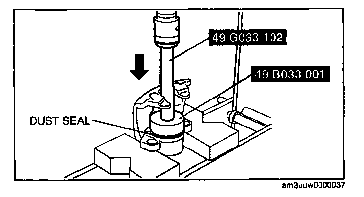 1. Press the piston into the dust seal opening as shown in the figure.