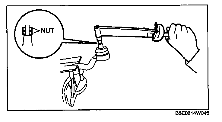 4. Install two nuts to the ball joint and measure the tie-rod end rotational torque using a torque wrench. If not within the specification, replace the tie-rod end.