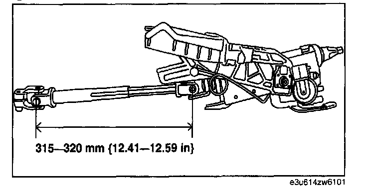 2. Verify that the measurement of the steering shaft indicated in the figure is as specified. If not within the specification replace the steering shaft component.