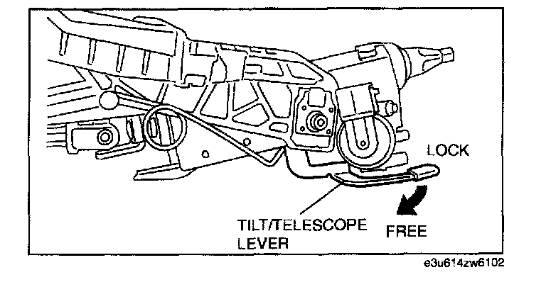 (2) Steering shaft is fixed firmly when the tilt/telescope lever is locked. If there is any malfunction, replace the steering shaft.