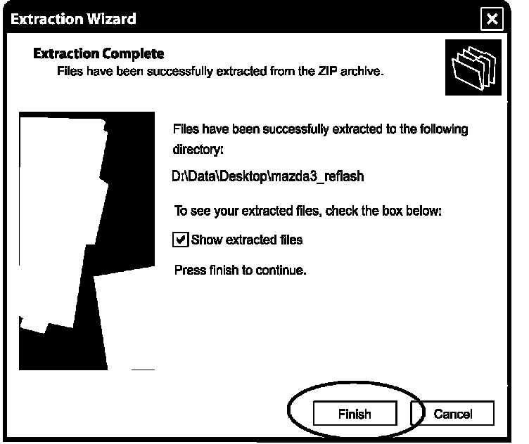 13. Uncheck the "Show Extracted Files" box and click "Finish".