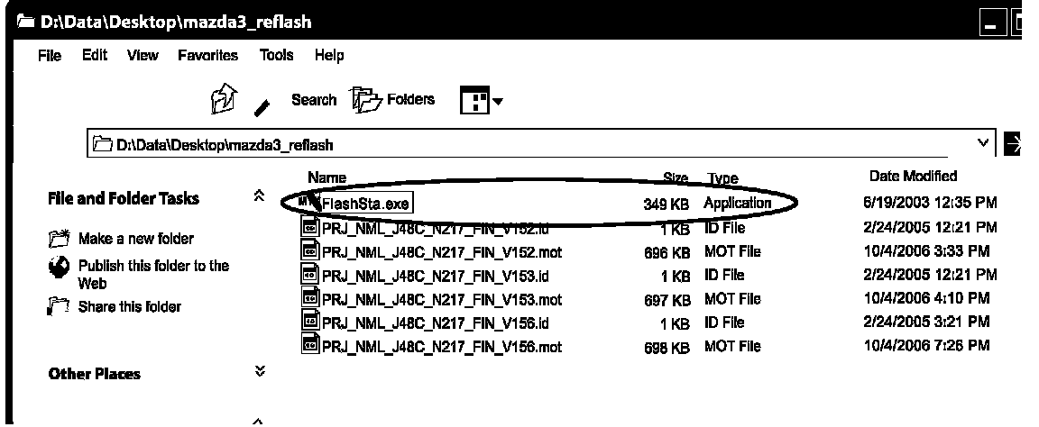 3. Navigate to and open the "mazda3_reflash" folder on the desktop containing the reflash program.
