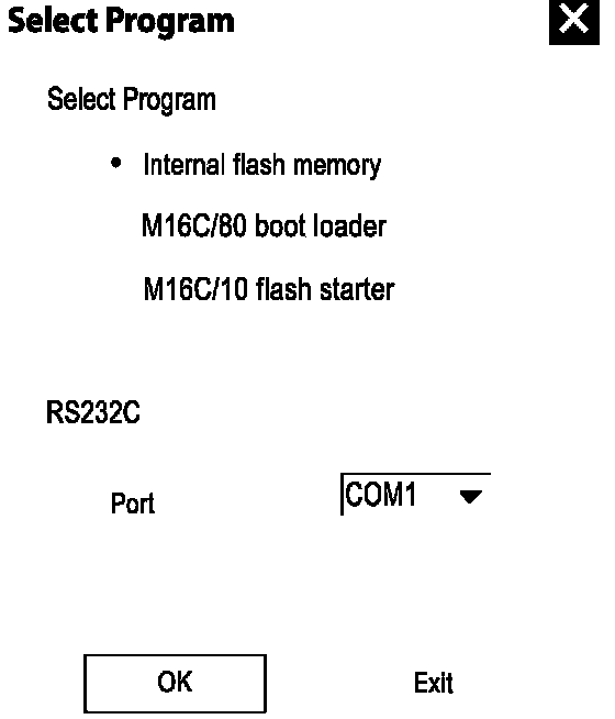 17. Click "OK" on the "M16C Flash Start - Program OK" window then "Exit" on the "M16C Flash Start" window to terminate the reflash program.