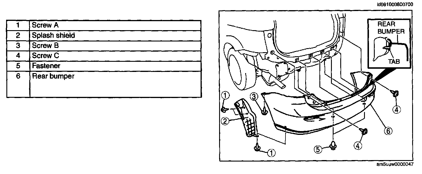 REAR BUMPER REMOVAL/INSTALLATION1. Remove in the order indicated in the table.
