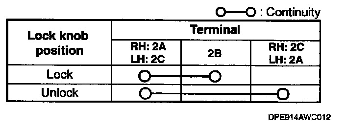 1. Inspect for continuity between the door lock-link switch terminals.