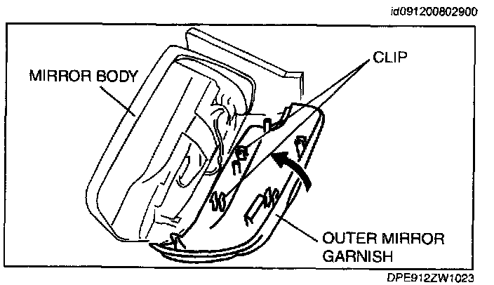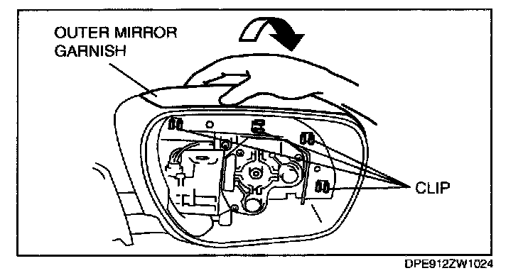 OUTER MIRROR GARNISH REMOVAL1. Remove the outer mirror glass from the outer mirror.
