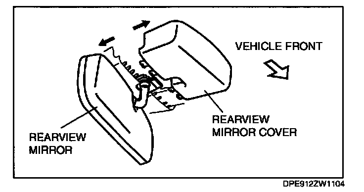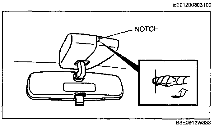 REARVIEW MIRROR REMOVAL/INSTALLATION1. Insert a tape-wrapped flathead screwdriver into the notch and pry with the screwdriver in the direction shown by the arrow to remove the covers. (Vehicles with auto wiper system)